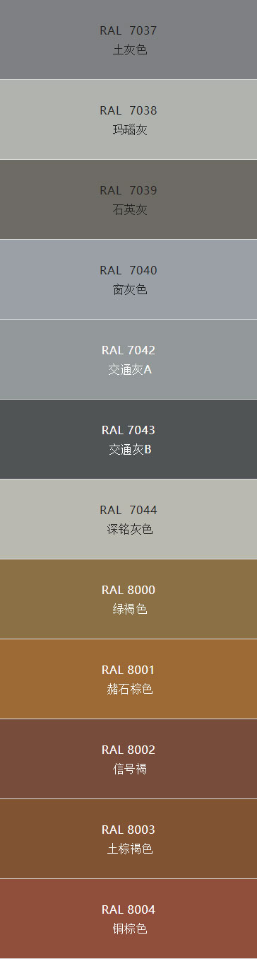 什么是RAL色卡?自從1927年,當(dāng)RAL涉入色彩時(shí),就創(chuàng)建了一種統(tǒng)一的語(yǔ)言,為豐富多彩的顏色建立標(biāo)準(zhǔn)統(tǒng)計(jì)和命名,這些標(biāo)準(zhǔn)在世界范圍內(nèi)被廣泛的理解和應(yīng)用。 4位數(shù)的RAL顏色作為顏色標(biāo)準(zhǔn)已達(dá)70年之久,至今為止已發(fā)展到200多種。無(wú)光澤的顏色基礎(chǔ)色卡為RAL-840HR,有光澤的為841-GL,這些顏色基本色塊滿足了大范圍的應(yīng)用,已被許多重要公司及研究機(jī)構(gòu)所使用。RAL-840HR及RAL-841GL 顏色注冊(cè)都作為顏色樣本應(yīng)用于設(shè)計(jì)中,同時(shí)它們也包括了安全和信號(hào)色符合DIN及ISO規(guī)定的顏色要求。